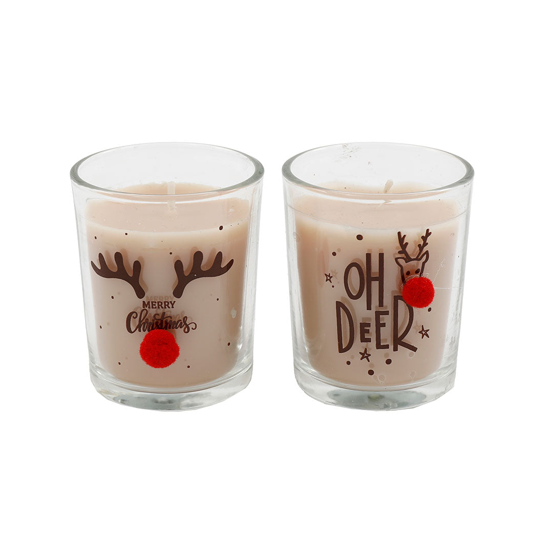 candela in paraffina in contenitore di vetro