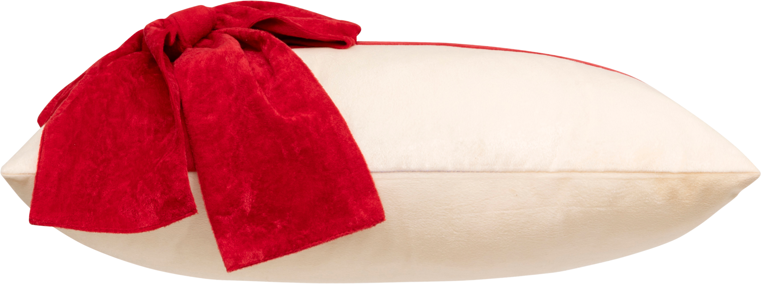 cuscino rettangolare base bianca con decorazione nastro rosso