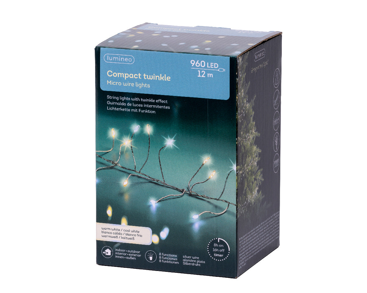 FILO LUCI COMPACT TWINKLE 960LED 12M LUCE CALDA LUCE FREDDA