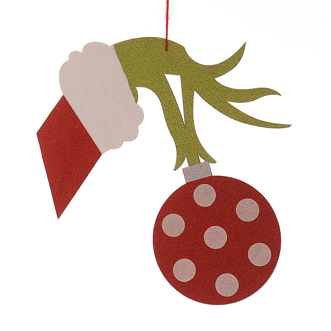 mano grinch con pallina da appendere