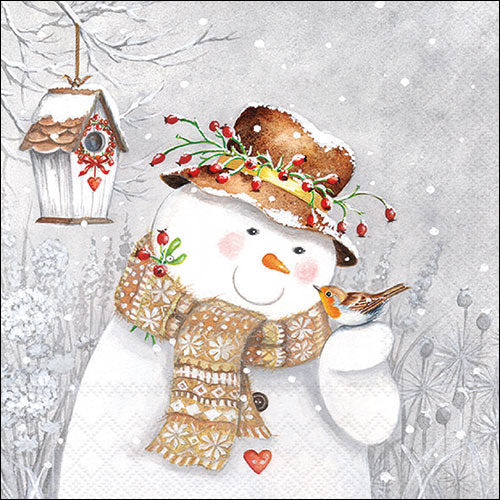 TOVAGLIOLI PUPAZZO DI NEVE CON PETTIROSSO