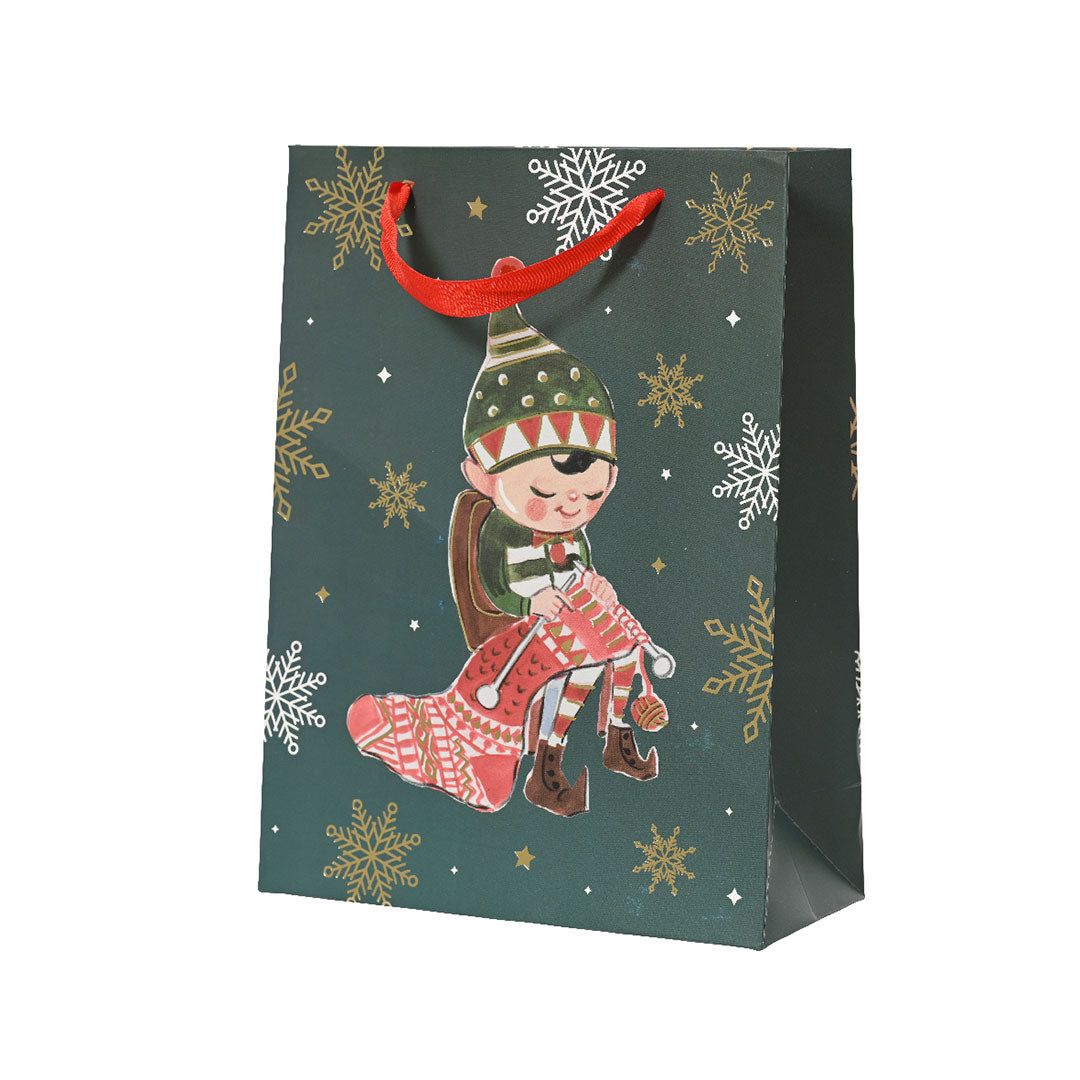 BUSTA REGALO CON ELFO CHE LAVORA A MAGLIA - MEDIA
