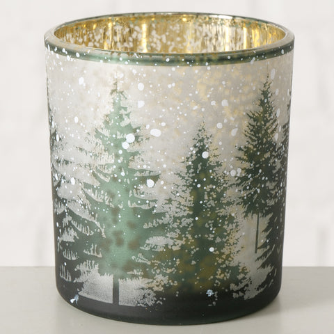 PORTA CANDELA TEA LIGHT CON ALBERI E NEVE