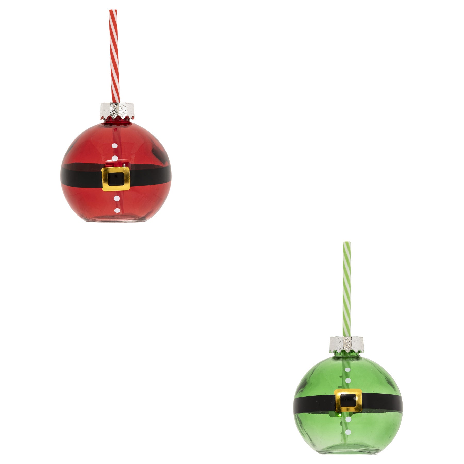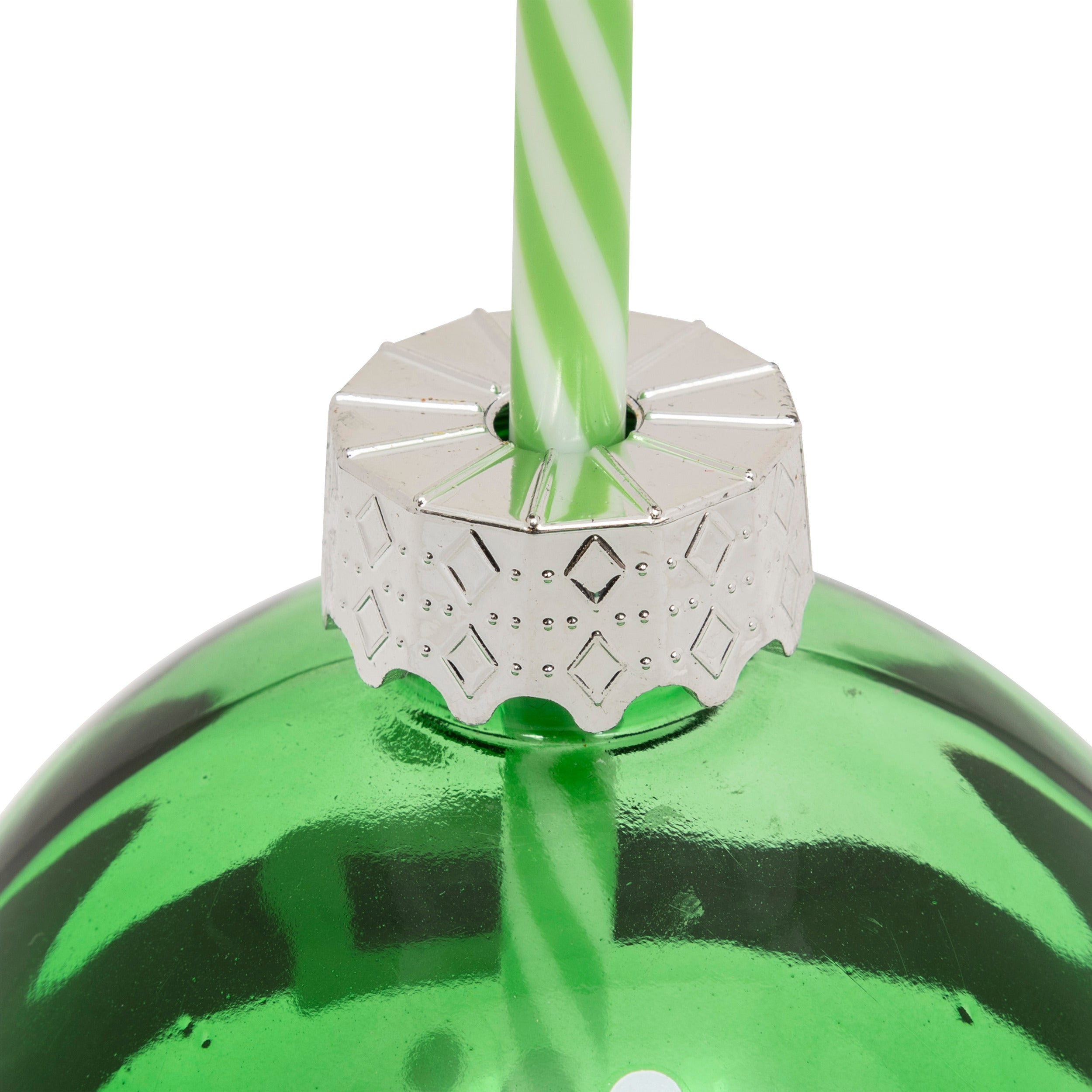 bicchiere in vetro a forma di pallina di natale con cannuccia