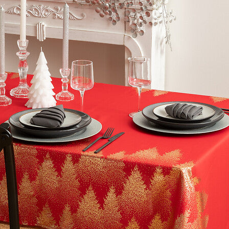 TOVAGLIA ROSSA E ORO CON PINI 140X240