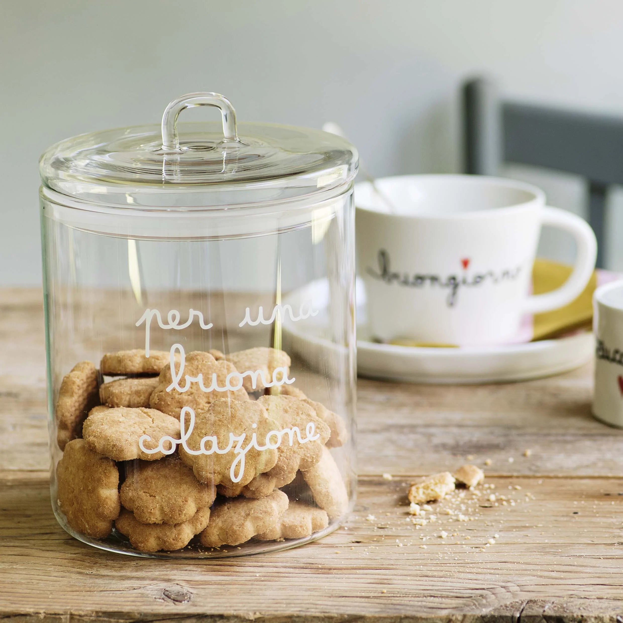 Biscottiera in vetro borosilicato decoro Per una buona colazione