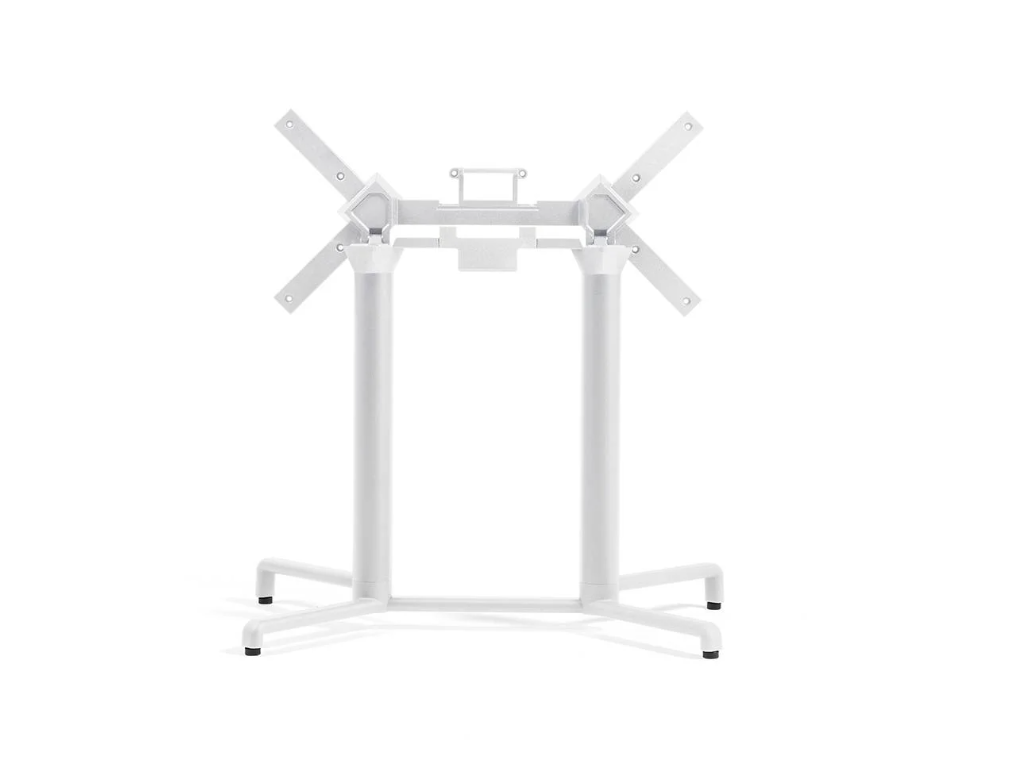 Base per tavolo pieghevole. Alluminio verniciato. Impilabile orizzontalmente. Dotata di piedini regolabili. Adatta per piani 110 x 70 - 120 x 80 cm.