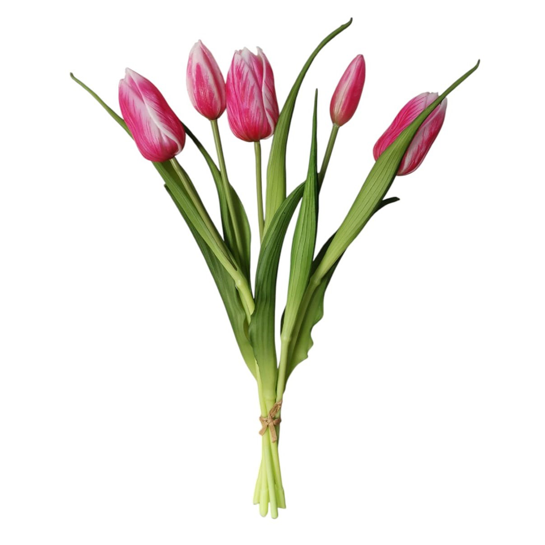 MAZZO DI TULIPANI REAL TOUCH H. 40 CM - FUCSIA E BIANCO