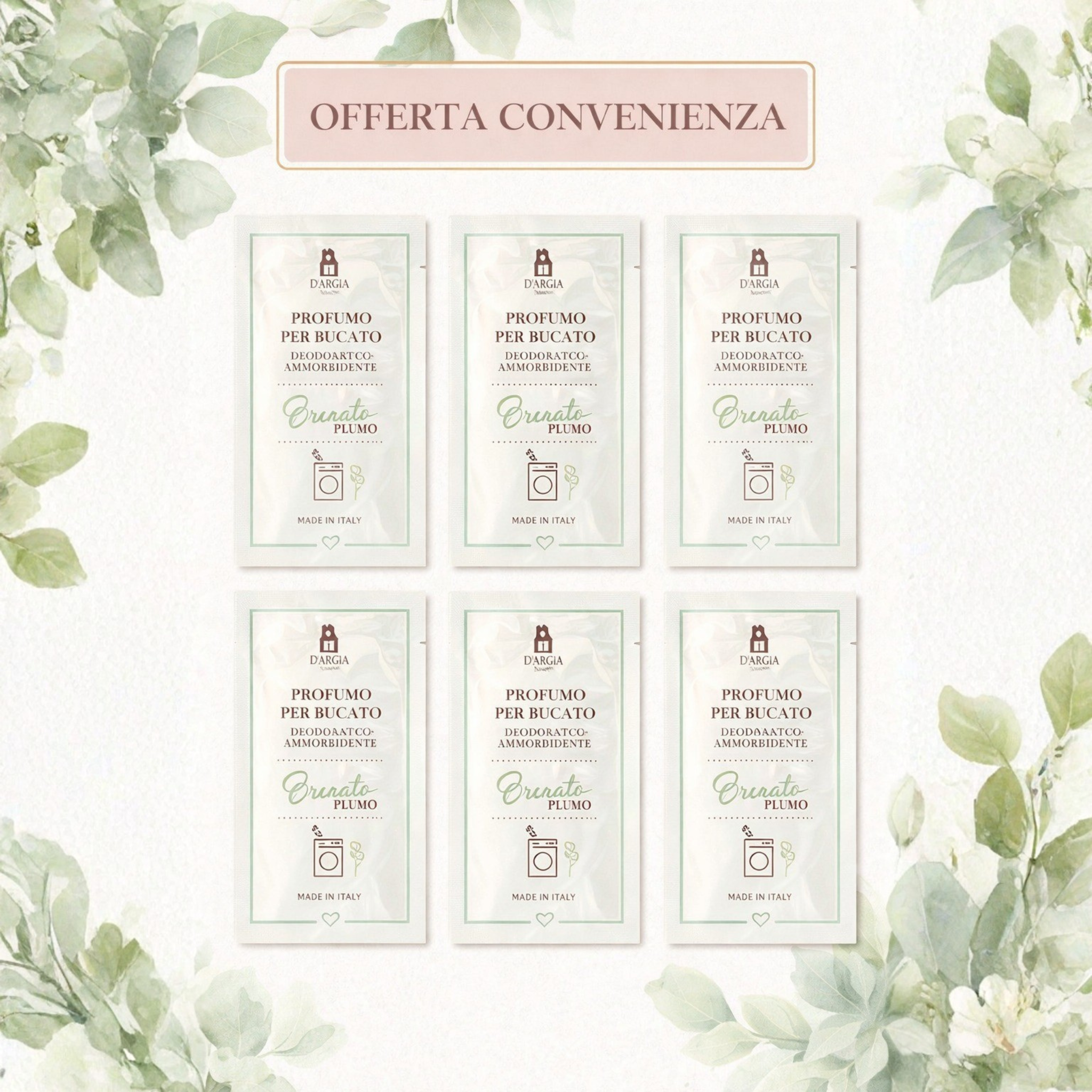 6 Bustine monodose di profumo per bucato prontamente biodegradabile