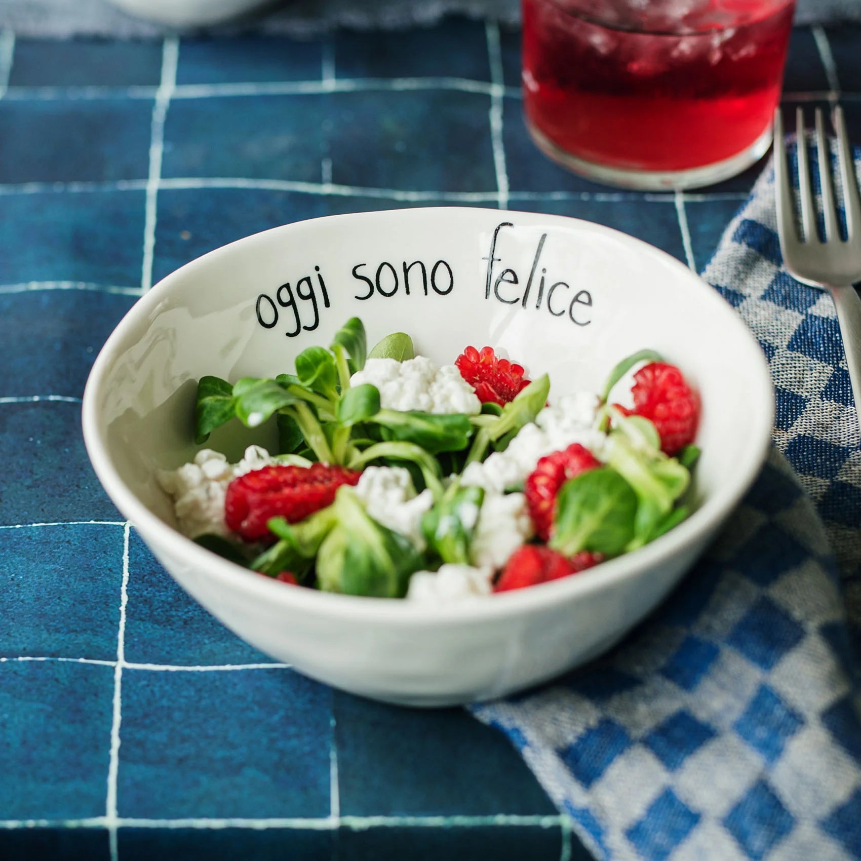 Set 2 Coppette in gres decoro Oggi sono felice